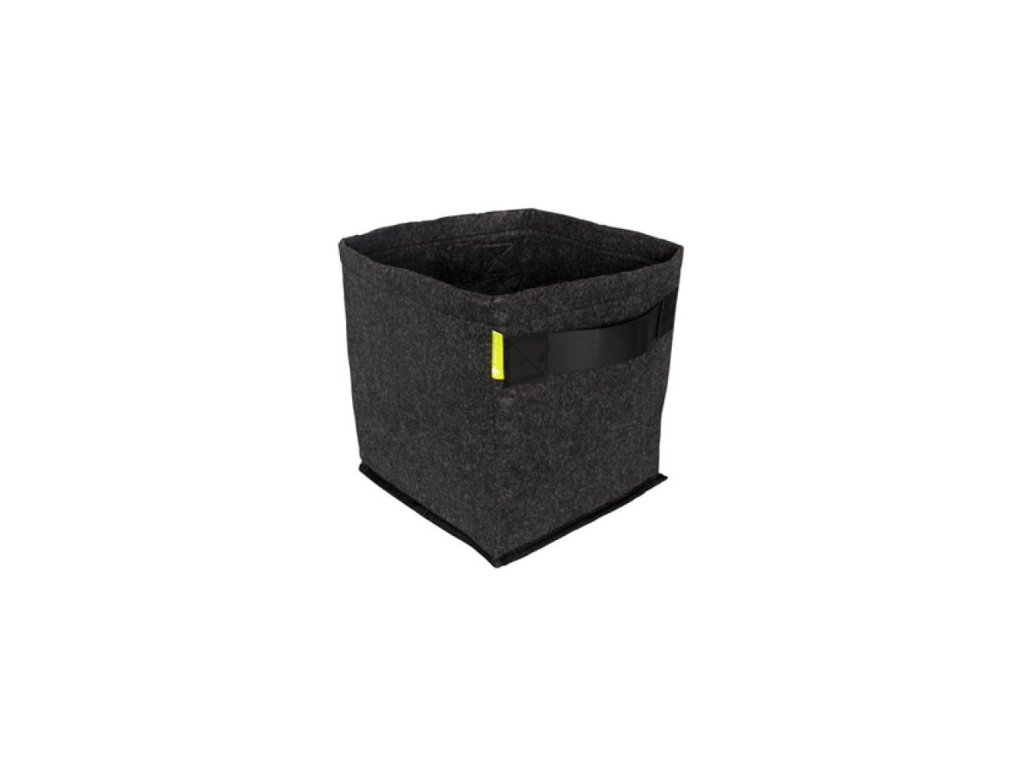 Čierny dvadsaťlitrový textilný kvetináč ProPot od Garden High Pro. Pevné švy a posilnené dno chránia pred pretrhnutím. Rozmery 26x26x30cm. S postrannými úchytmi pre ľahkú manipuláciu.